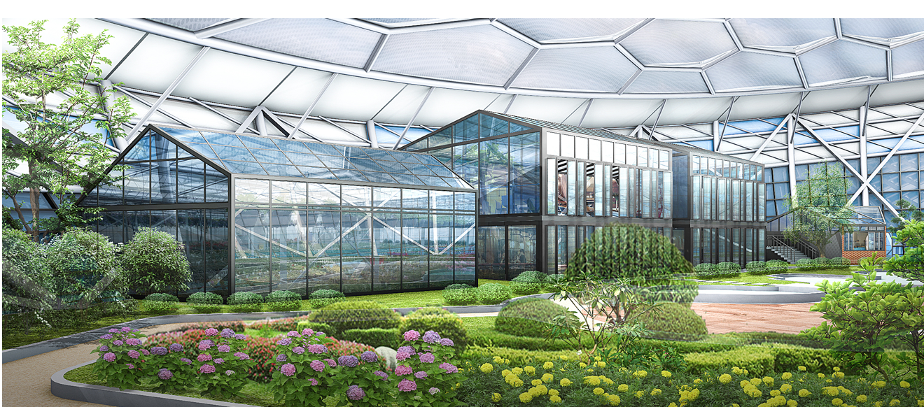 온실 구성: 지중해관 + 열대관