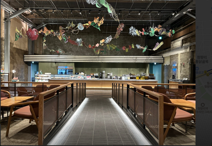 특징: 경동극장 리모델링, 계단식 구조 보존, 대형 스크린 주문 시스템