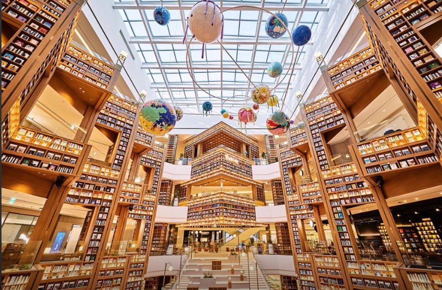- 스타필드 수원 별마당 도서관: 22m 높이 책장 사이에서 독서