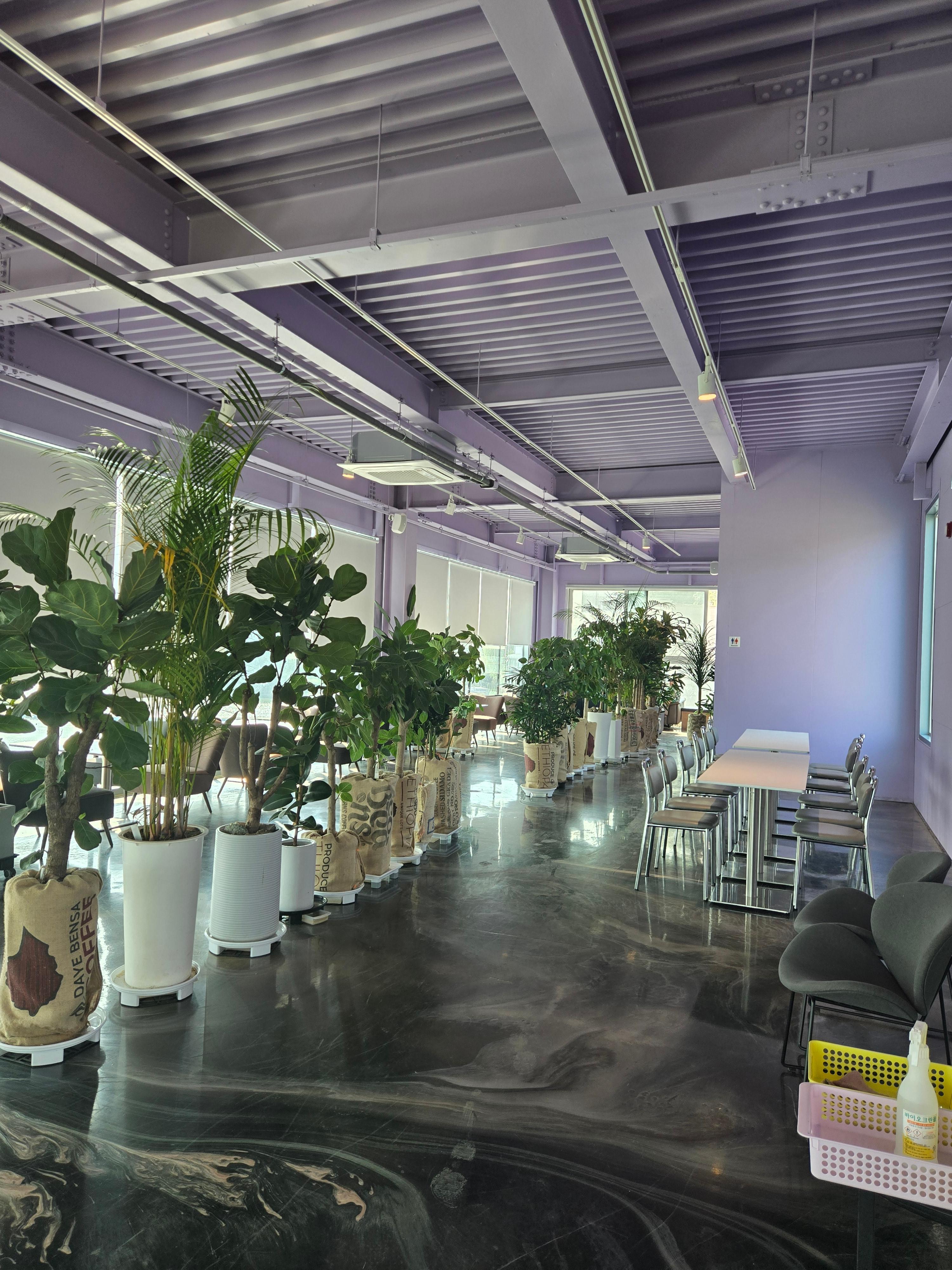 대형 카페답게 넓고 쾌적한 실내 공간이 가장 큰 장점입니다. 높은 천장과 큰 창문을 통해 들어오는 자연광이 매장 전체를 밝게 만들어, 사진 찍기에도 좋은 환경을 제공합니다.