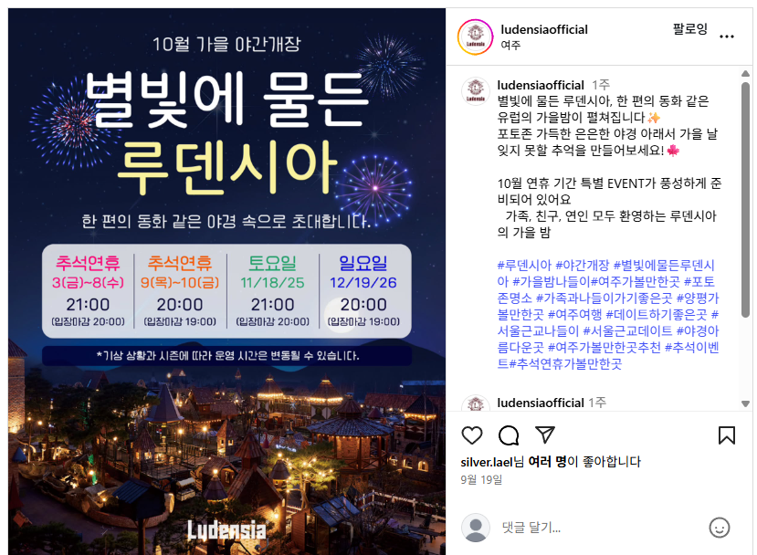 아이들과 가을 나들이 겸 특별한 주말을 보내고 싶어서 여주에 있는 루덴시아 테마파크를 다녀왔습니다. 사실 루덴시아를 선택한 가장 큰 이유는 뮤지컬 배우 구시후 님의 라이브 공연이 있다는 소식 때문이었어요. 유럽풍 테마파크에서 라이브 공연까지 즐길 수 있다니, 기대감을 안고 다녀온 솔직한 후기 공유합니다!
