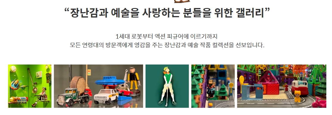 다양한 피규어와 예술 작품들이 있는 공간이에요. 어른 아이 할 것 없이 모두 즐거워하는 곳입니다.