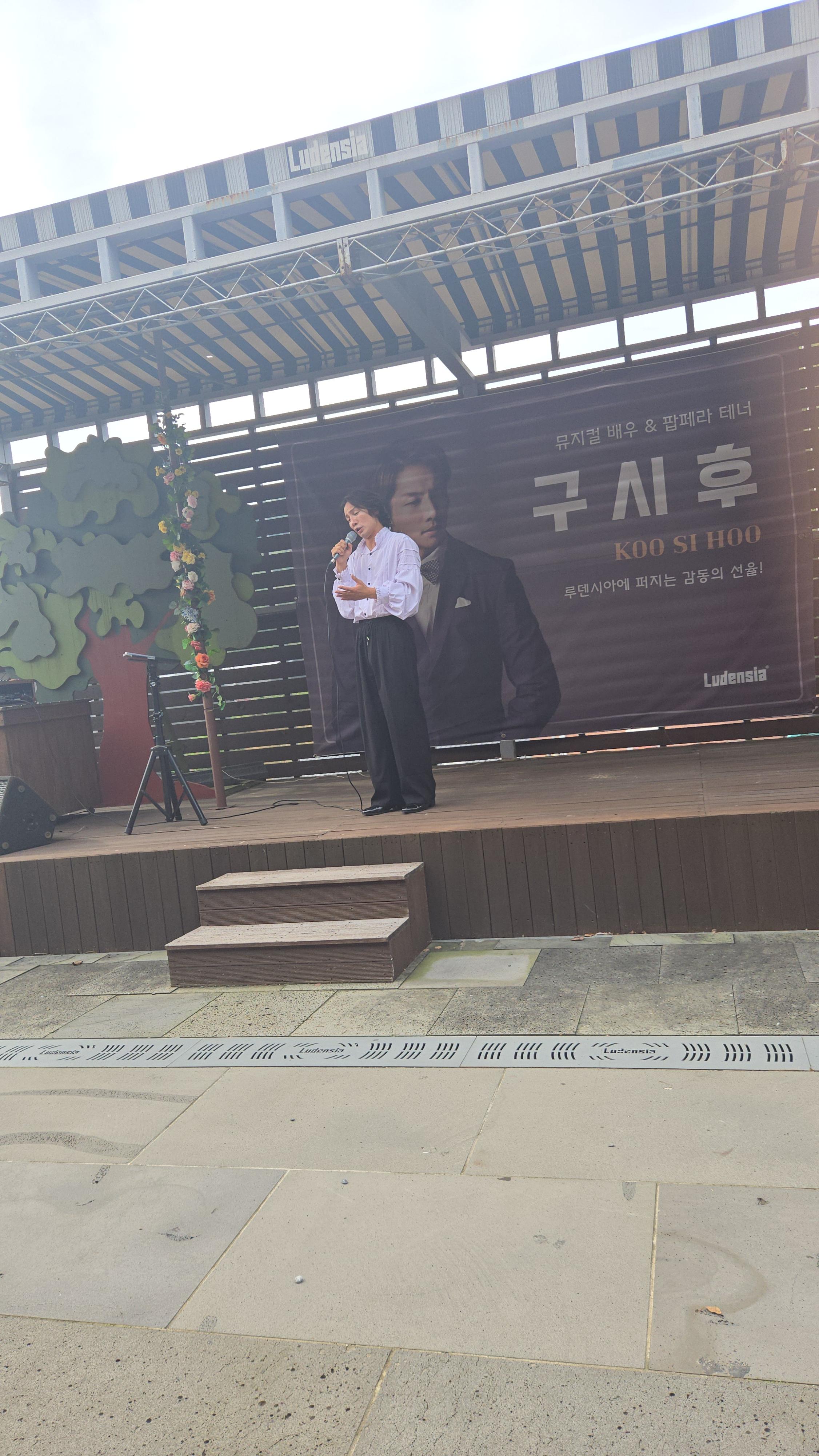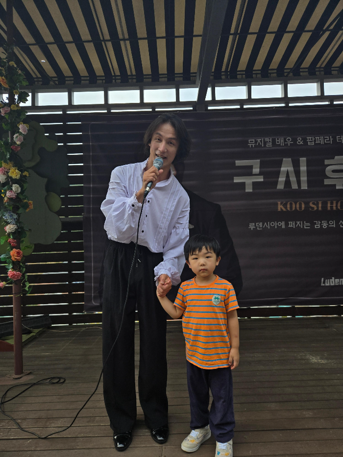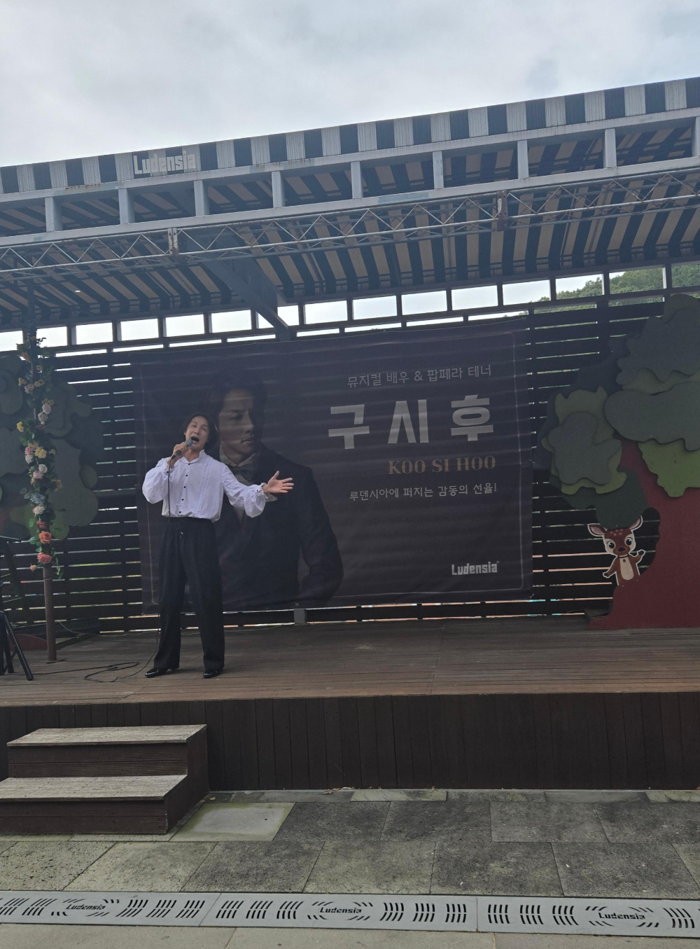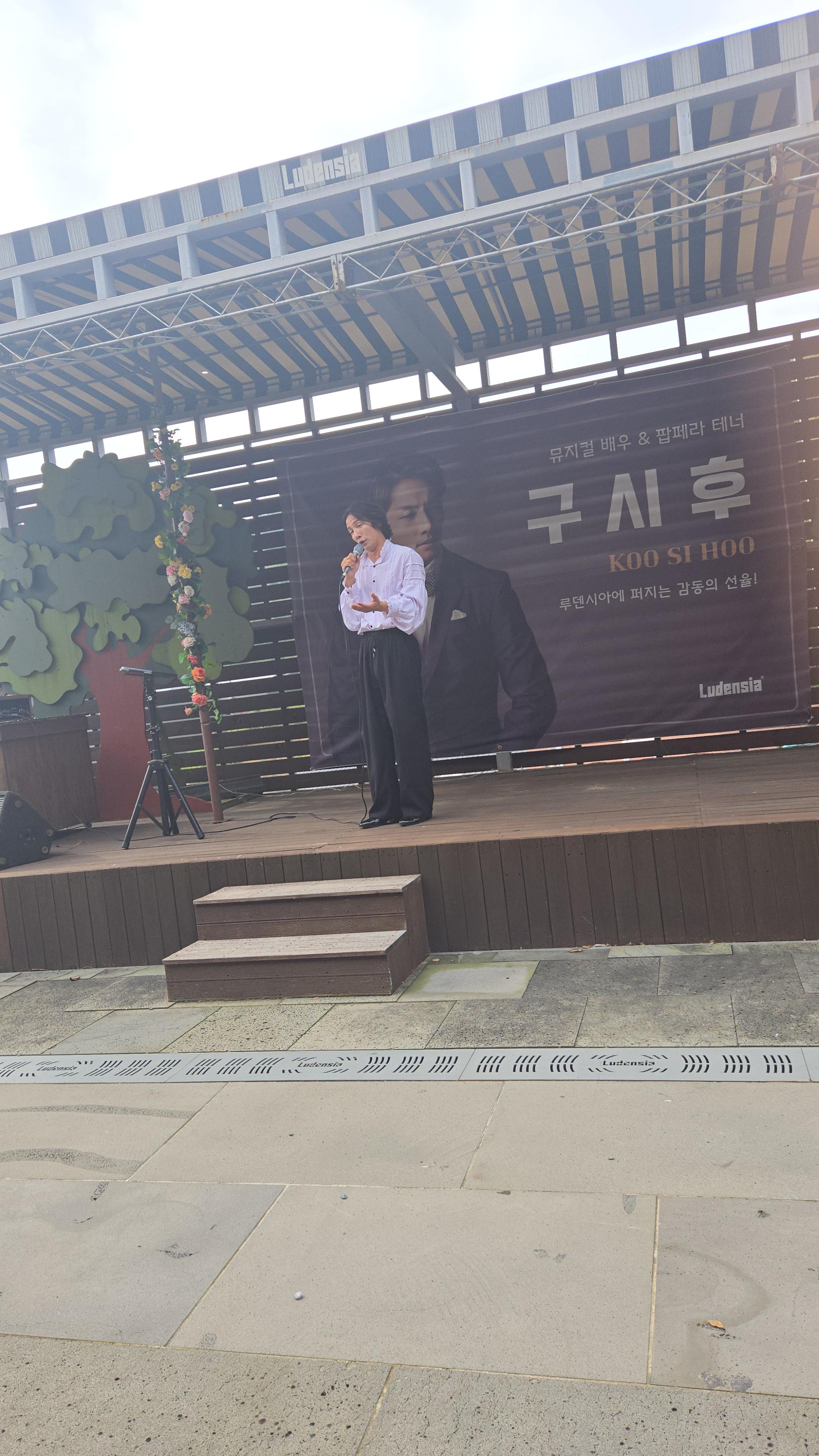 제가 루덴시아를 방문한 가장 큰 이유가 바로 이 공연이 아닐까 싶네요. 뮤지컬 배우 구시후 님의 라이브 공연을 야외 무대에서 감상할 수 있다는 건 정말 특별한 경험이었습니다.