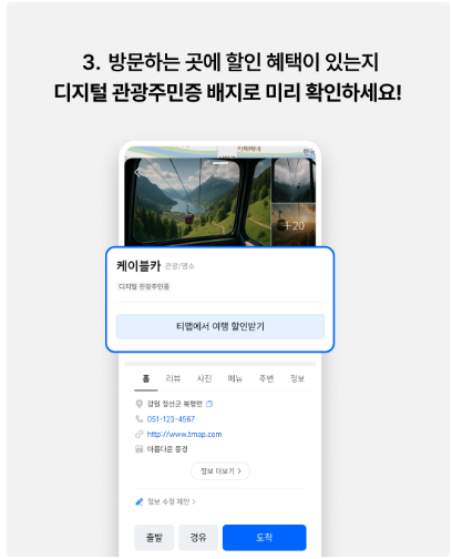 - 여행 전 미리 발급: 가고 싶은 지역의 디지털 관광주민증을 티맵에서 미리 발급