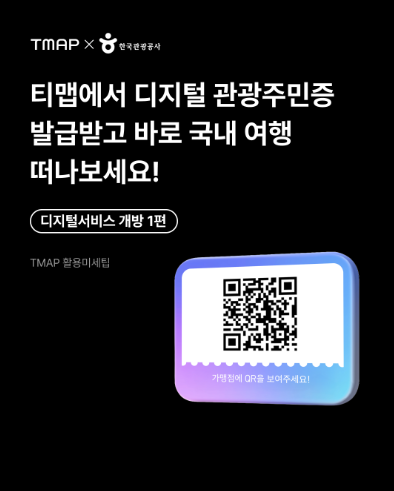 - 여행 전 미리 발급: 가고 싶은 지역의 디지털 관광주민증을 티맵에서 미리 발급