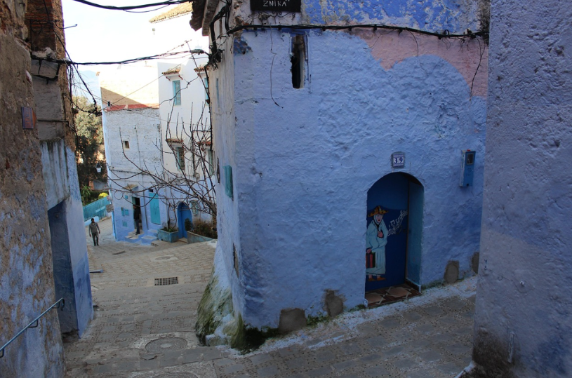 모로코 쉐프샤우엔 구시가지: ‘블루 펄’이라 불리는 파란 골목길 풍경.