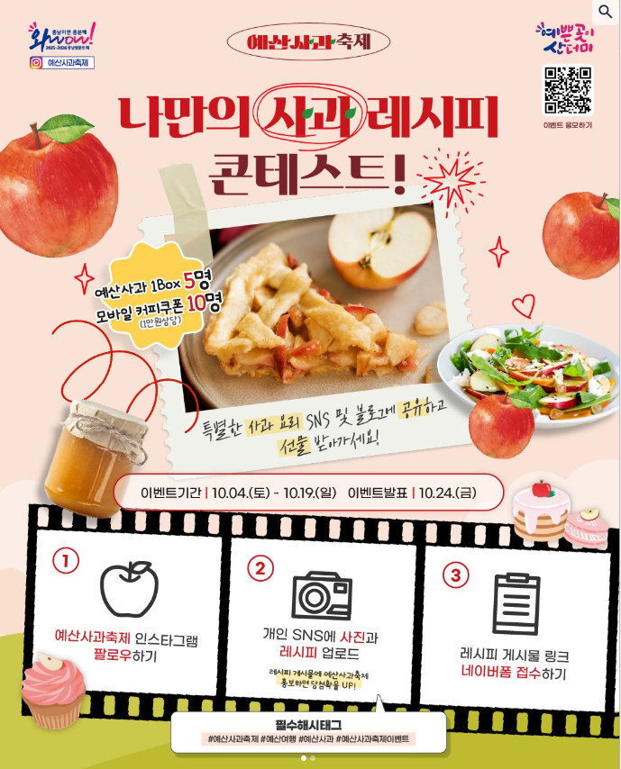 - 🍏 달고 아삭한 예산사과를 현장에서 맛볼 기회